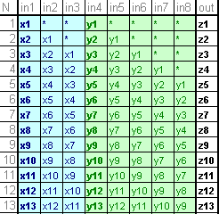 При этом на первые три входа всегда подаются значения переменных одной группы (X), а на входы 4,5,6,7,8 - значения переменных группы Y.