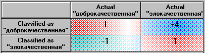 Если Вы выбрали Minimize total number of incorrect classifications (Минимизация полного количества ошибочных классификаций), то NeuroShell Classifier будет стремиться снизить количество ошибочных классификаций независимо от того, в какой категории они происходят.