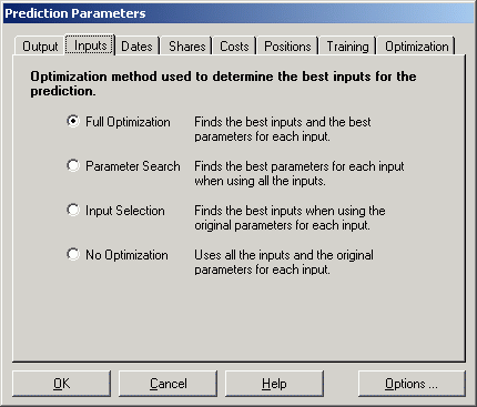 NeuroShell Trader Professional дополнительно предоставляет Вам возможность использовать оптимизацию на основе генетического алгоритма для поиска наилучших входов (например, индикаторов), и/или наилучших параметров для входов (т.е. , например, параметров индикаторов, таких, как временные интервалы для скользящих средних), что может существенно повысить качество прогнозов. Вы можете находить оптимальные параметры для индикаторов, подающихся на вход, а также пороги покупки/продажи при тренировке на получение прибыли