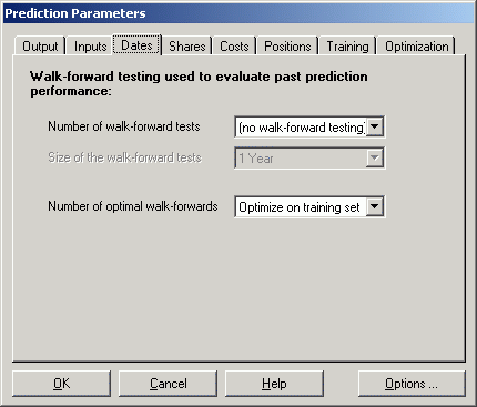 Для того, чтобы убедиться, что нейронная сеть качественно работает на Ваших данных, NeuroShell Trader выполняет проверку со сдвигом. Каждая нейронная сеть, которую Вы построили, тренируется и проверяется на нескольких различных временных периодах в прошлом для того, чтобы Вы могли выяснить, способна ли нейронная сеть устойчиво давать хорошие результаты, используя индикаторы и другие данные, которые ей подаются на вход. NeuroShell Trader предоставляет Вам возможность указать количество проверочных испытаний и задать временной интервал между ними. Вы можете также установить ограничения на размер тренировочного набора. Проверка автоматически выполняется для каждого инструмента Вашего портфеля.