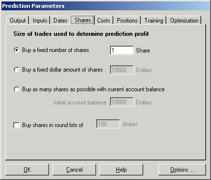 Так, на вкладке Shares Вы можете выбрать, будет ли NeuroShell Trader при оптимизации нейронной сети :