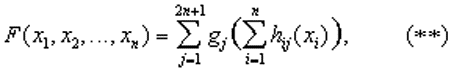 Любая непрерывная функция от n переменных F(x1, x2, ..., xn) может быть представлена в виде