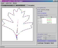 Распознавание листьев Апплет для классификации листьев с помощью нейронных сетей. Программа позволяет загружать изображения пользователя, тренировать нейронные сети. Апплет свободно распространяемый, с сайта авторов можно скачать исполняемые файлы, примеры изображений и исходные коды программы. Подробнее Страница запуска апплета |